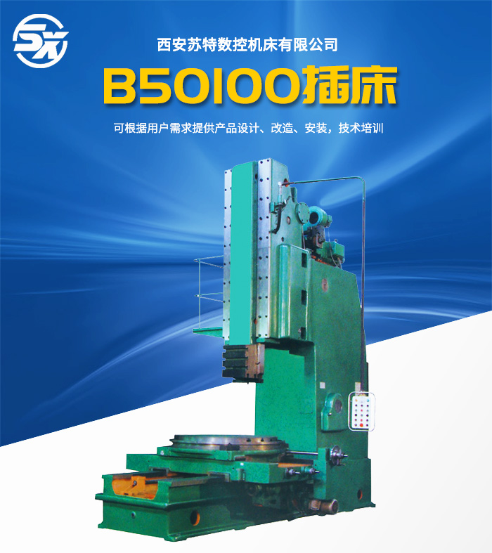插床用于插削平面、成型面及键槽等,并能插倾斜度在10°范围内的模具等工作物,适用于单个或小批量生产的企业。插床的工作台具有三种不同方向的进给(纵向、横向和回转),故工作物经过一次装夹后,在本机床加工几个表面。